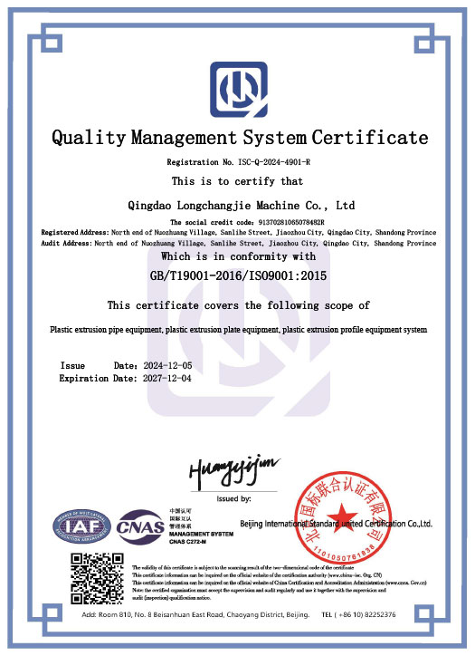 Qingdao Changjie Machinery Co., Ltd. è stata fondata il 6 novembre 2001 e ha cambiato il suo nome in Qingdao Longchangjie Machinery Co., Ltd. il 23 aprile, 2013. L'azienda si trova nel porto di fama mondiale e nella città aperta costiera - Qingdao, è un'impresa moderna nelmacchinari di plasticaIl settore stabilisce nuovi prodotti, progettazione, produzione e vendite in uno. Il trasporto sfrutta appieno il mare tridimensionale, la terra e l'aria. Le persone di Changjie continuano ad imparare la tecnologia professionale del domestico e controparti straniere, impegnate nella ricerca, nello sviluppo, nel design e produzione diAttrezzatura di estrusore, in modo che la nostra tecnologia di processo si stringa a livello avanzato a casa e all'estero.